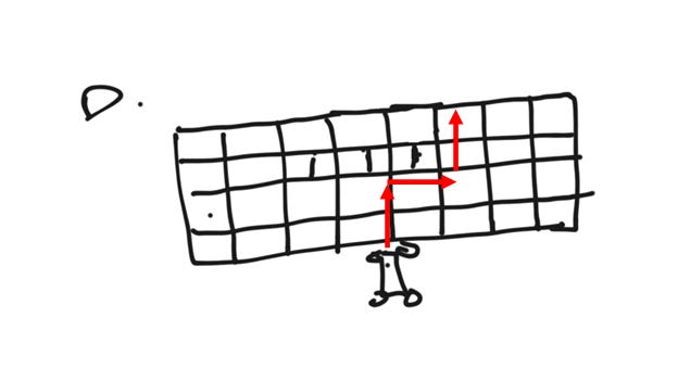 Then in part C, we represent this to our car by placing a 1 on the grid. We also place the 1 for the calculation involving 0 degrees and 8cm. Blank spaces are free for the care to drive on.